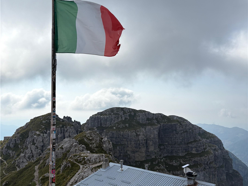 Ormai la cima del Monte Guglielmo è vicina e il panorama lascia senza fiato. In poco tempo, deviando dal percorso che porta al Rifugio Almici, si raggiunge lo straordinario Monumento al Redentore (1948m) e la statua a San Paolo VI. Dalla cima si vede il Rifugio Almici poco più in basso (1861m).